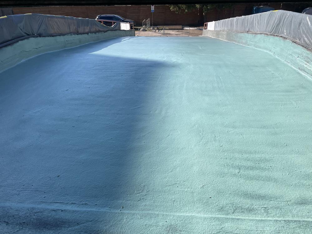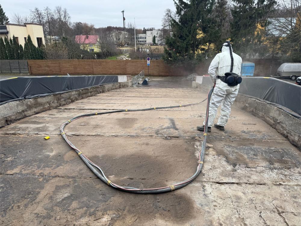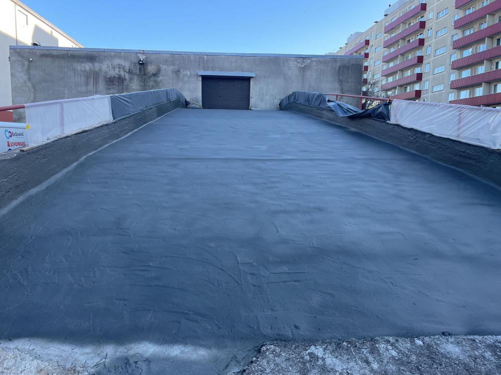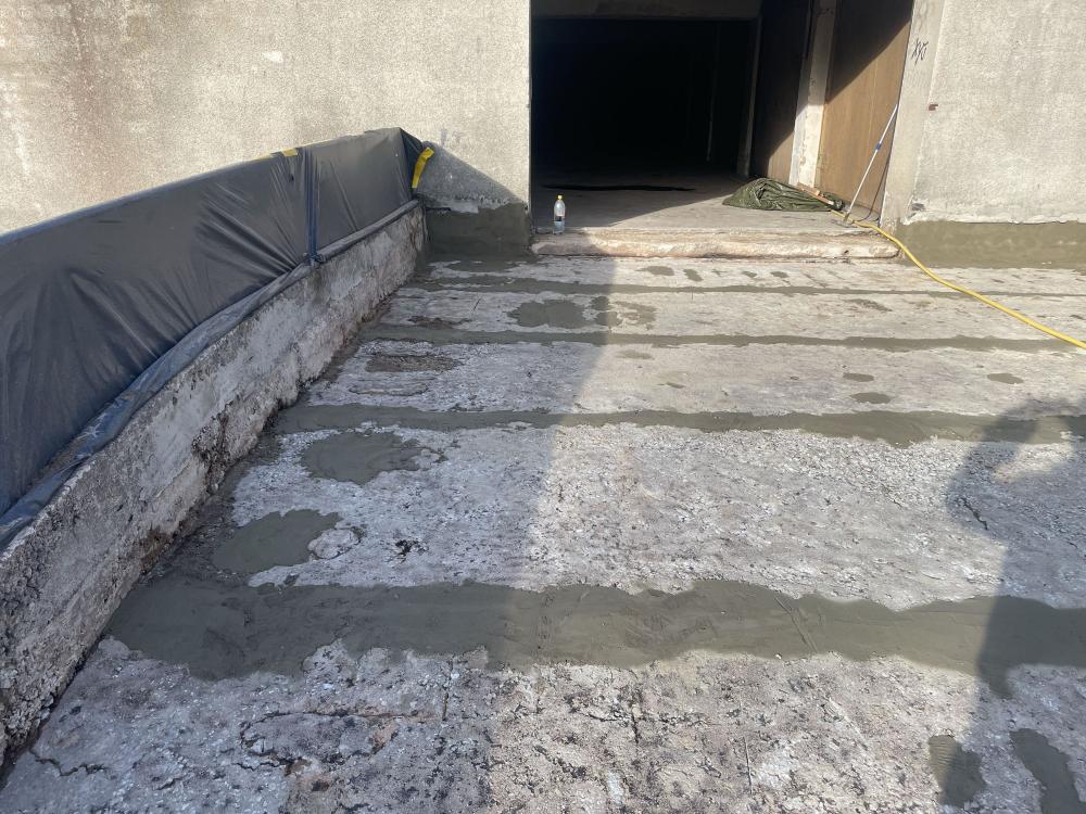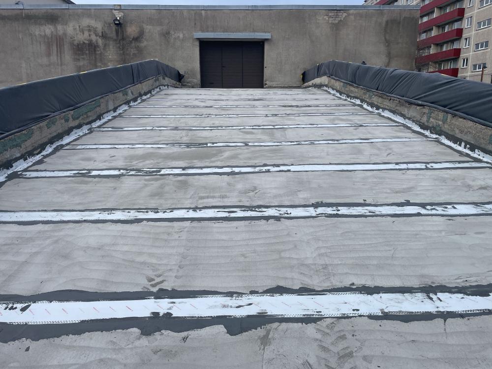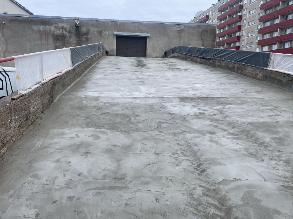 Selleks, et selline konstruktsioon veetihedaks saada, tuleb kõigepealt eemaldada kõik kihid kuni kandva konstruktsioonini välja. Kui kõik kihid olid eemaldatud, siis karestati kogu pind ultrakõrgsurvepesuriga. Pärast tasandussegu paigaldamist kanti pinnale kahes kihis hüdroisolatsioonisüsteem Köster NB 4000, mis on väga elastne ning väga heade nakkuvusomadustega mineraalne hüdroisolatsioonivõõp. Nurkadesse paigaldati nurgalindid ning paneelide vuukide kohale tasandussegule paigaldati armeerimiskangas, mis aitab hüdroisolatsioonimembraanil pragudest tekkivaid pinegid leevendada.
