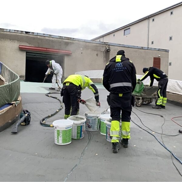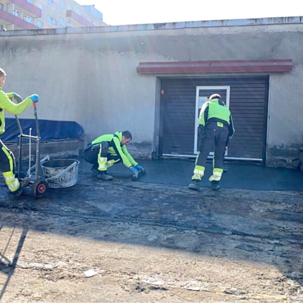 Selleks, et selline konstruktsioon veetihedaks saada, tuleb kõigepealt eemaldada kõik kihid kuni kandva konstruktsioonini välja. Kui kõik kihid olid eemaldatud, siis pesime kogu pinna ultrakõrgsurvepesuriga (2500 bar) puhtaks, et saada aluspinnalt kätte absoluutselt kõik bituumenijäägid. See oli oluline seetõttu, et õõnespaneelide tasandamiseks kasutatud tasandussegu nakkub aluspinnale paremini, kui seal ei ole bituumenit. Pärast tasandussegu paigaldati kahes kihis hüdroisolatsioonisüsteem Köster NB 4000, mis on väga elastne ning ülieheade nakkuvusomadustega mineraalne hüdroisolatsioonivõõp. Nurkadesse paigaldati nurgalindid ning paneelide vuukide kohale tasandussegule paigaldati armeerimiskangas, mis aitab hüdroisolatsioonimembraanil pragudest tekkivaid pinegid leevendada.