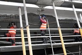 Traveter Grupp OÜ together with Nordecon Betoon OÜ carried out the restoration of the Papiniidu bridge beam. Nordecon Betoon removed loose and broken concrete and bent and damaged rebar. The new reinforcements were connected to the existing ones by welding. The concrete installation was carried out using the shotcrete method, for which a Sika Aliva dry shotcrete pump was used. Since the reinforcement of such a load-bearing beam is very dense, shotcrete requires great precision and skills, so that the result is void-free and dense concrete around the reinforcement. Otherwise, the beam would not work.