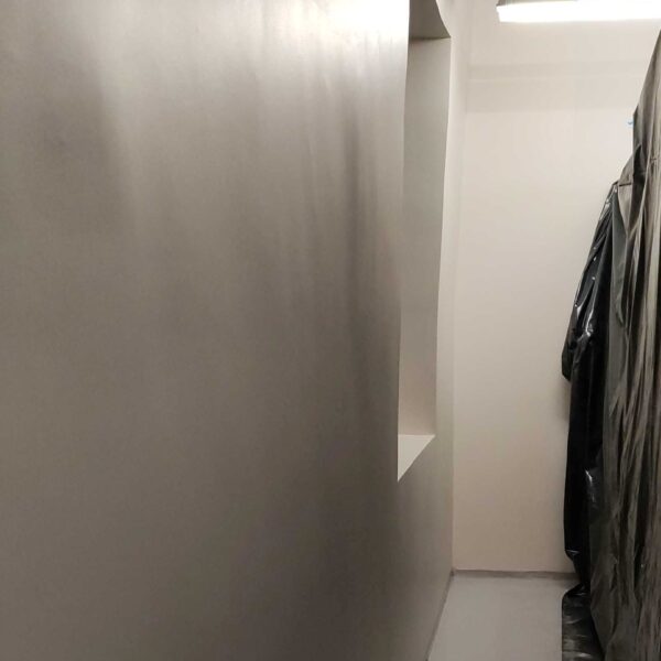 Hoones sees ehk hoidlates eemaldasime seintelt kahjustunud krohvi. Aluspinna parandasime ja krohvisime sirgeks. Välisseina müürid injekteeriti materjaliga Köster Crisin Cream, mis moodustab horisontaalse barjääri niiskuse tõkestamiseks müüris. Välisseina sisepinnale paigaldati negatiivset niiskust taluv hüdroisolatsiooni Aquafin-1K. Sellele järgnes krohvimine, pahteldamine ja värvimine.