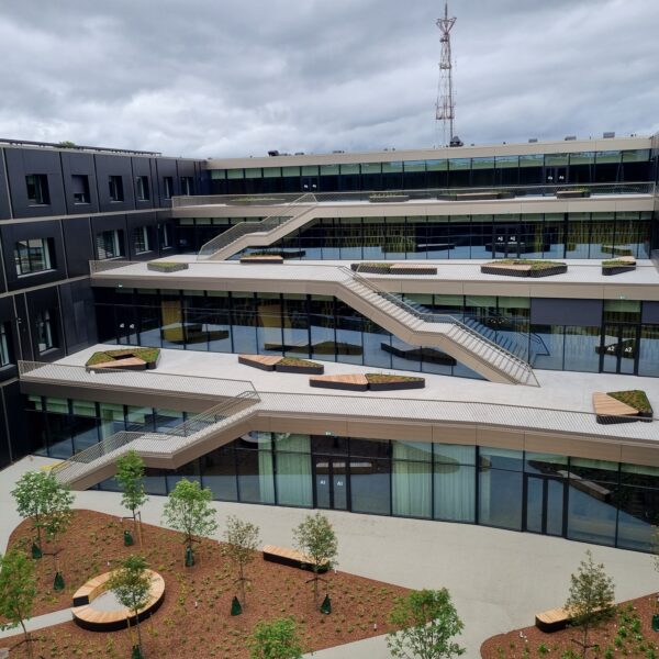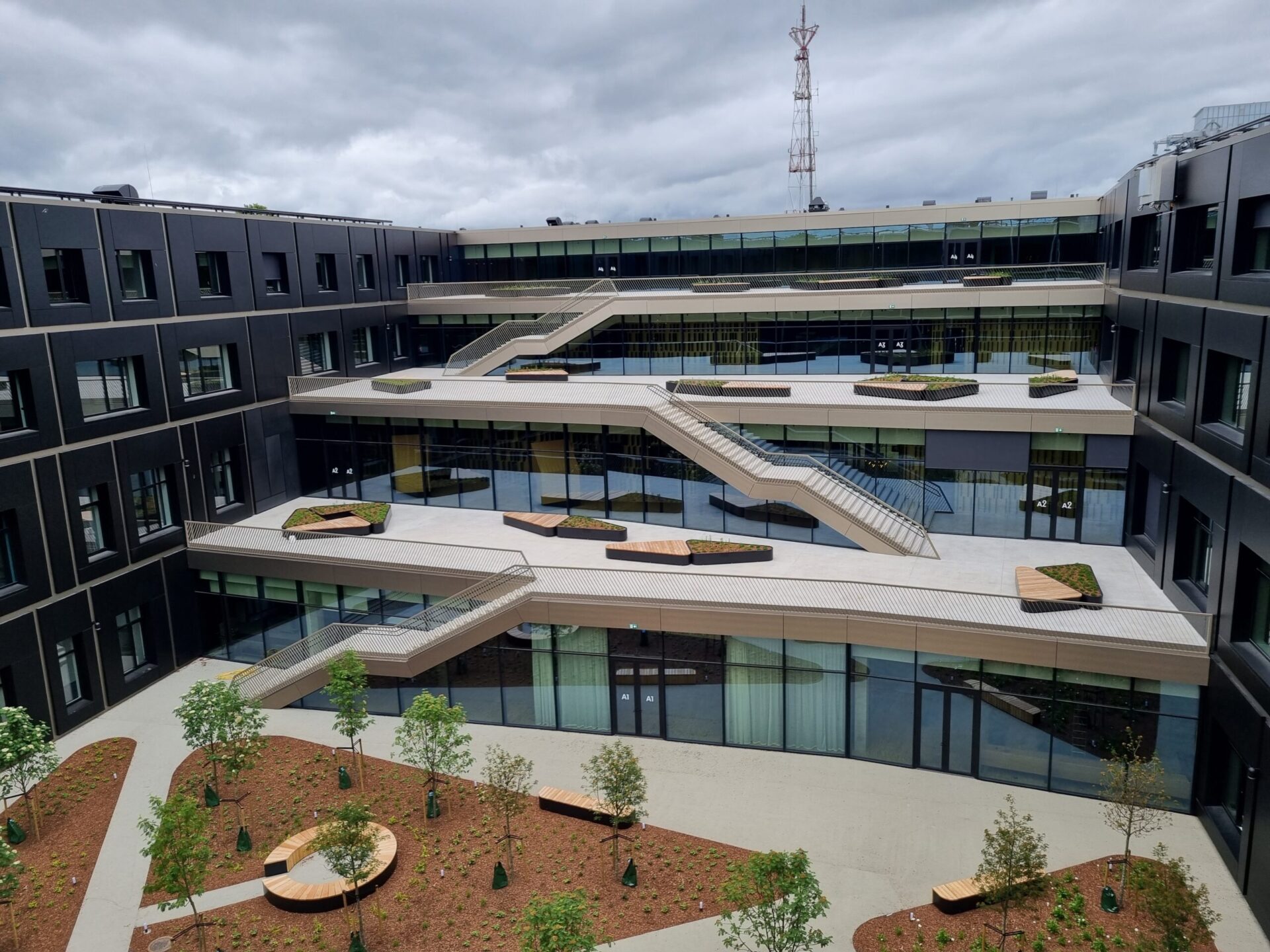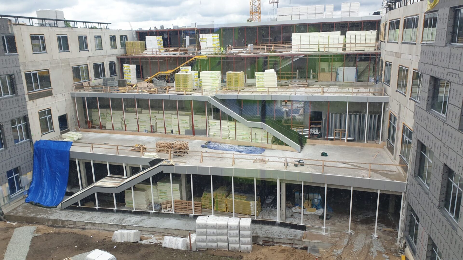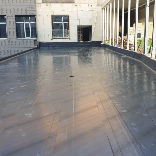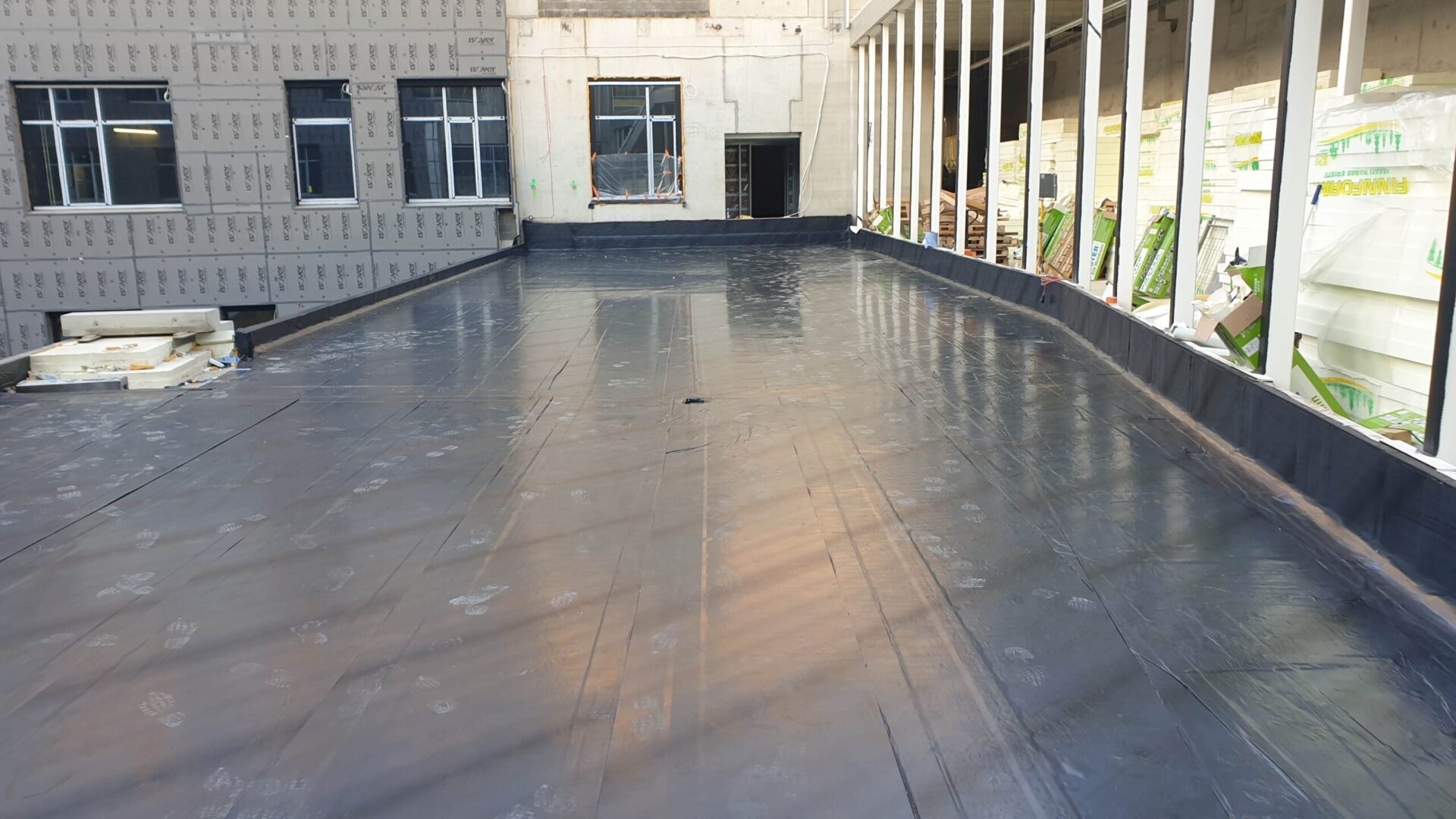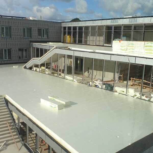 Uues Muusika- ja Balletikooli sisehoovis ja ujula peal asuvad kokku neli katuseterrassi, mis on lahendatud pööratud katuse konstruktsiooniga. Sarnase lahendusega on tagatud ka terasse ühendavate treppide veekindlus. Katuseid läbivad deformatsioonivuugid lahendasime epoliimi ja termoplastist vuugilindiga ASO-Tape. Terrasside hüdroisolatsiooniks kasutasime liimitavat membraani Köster KSK SY 15. Hüdroisolatsioon sai dreenkihiks geotekstiili ja libisemiskihiga dreenamti Delta Geo-Drain-Quattro. Pööratud katused soojustasime XPS Finnfoam FL400 materjaliga, mille paksus oli 300 kuni 400 mm. Soojustuse peale valas betoonitööde teostaja betoonist plaadi.