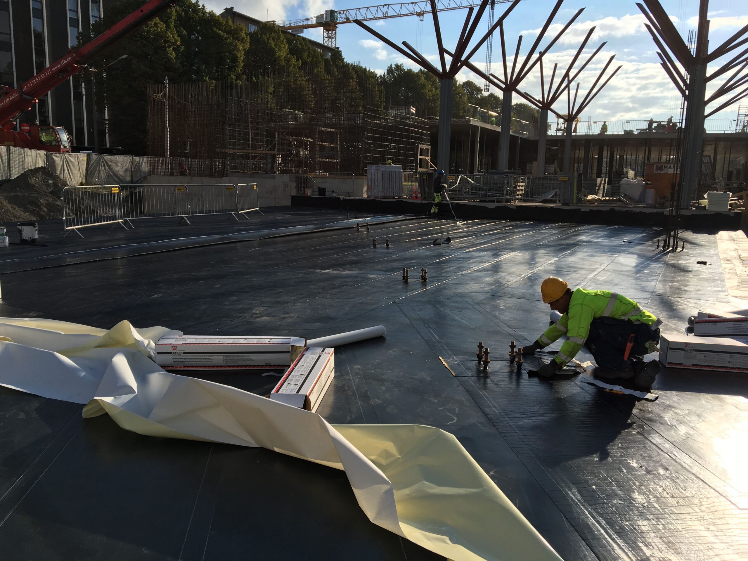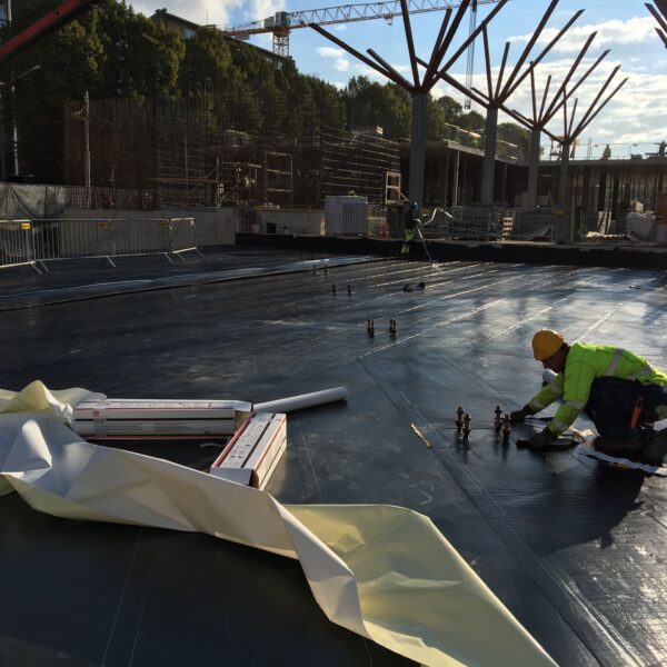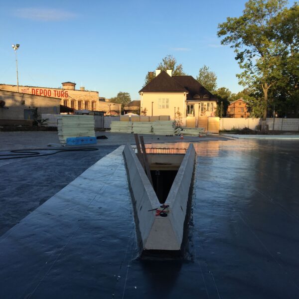 Balti Jaama turuhoone pööratud katuste hüdroisolatsioon ja soojustamine ning hoone vundamendi hüdroisolatsiooni paigaldus ning soojustamine.