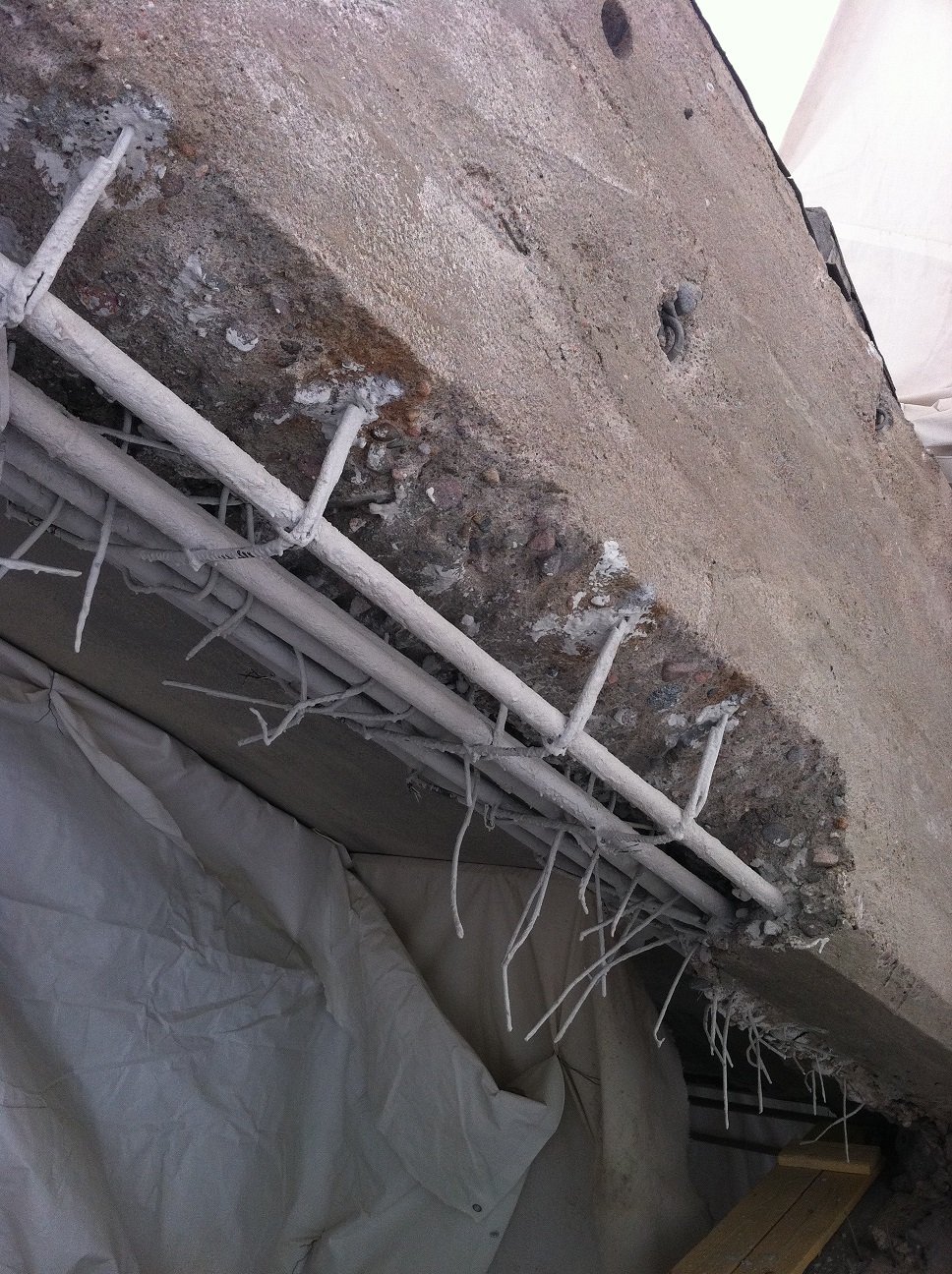 Raudbetoonkonstruktsioonide betooniremont Eesti Meremuuseumi vesilennukite angaaris.