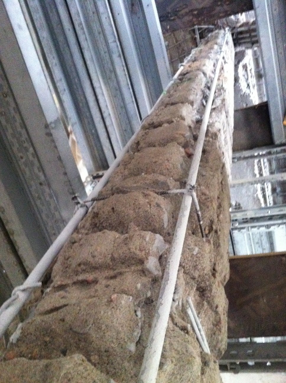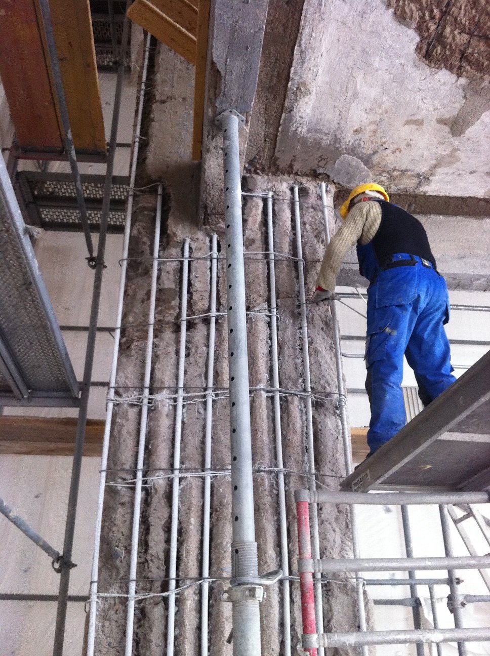 Raudbetoonkoorikute laepinnale roostevaba võrgu paigaldus ja märgmeetodil torkreetimine.