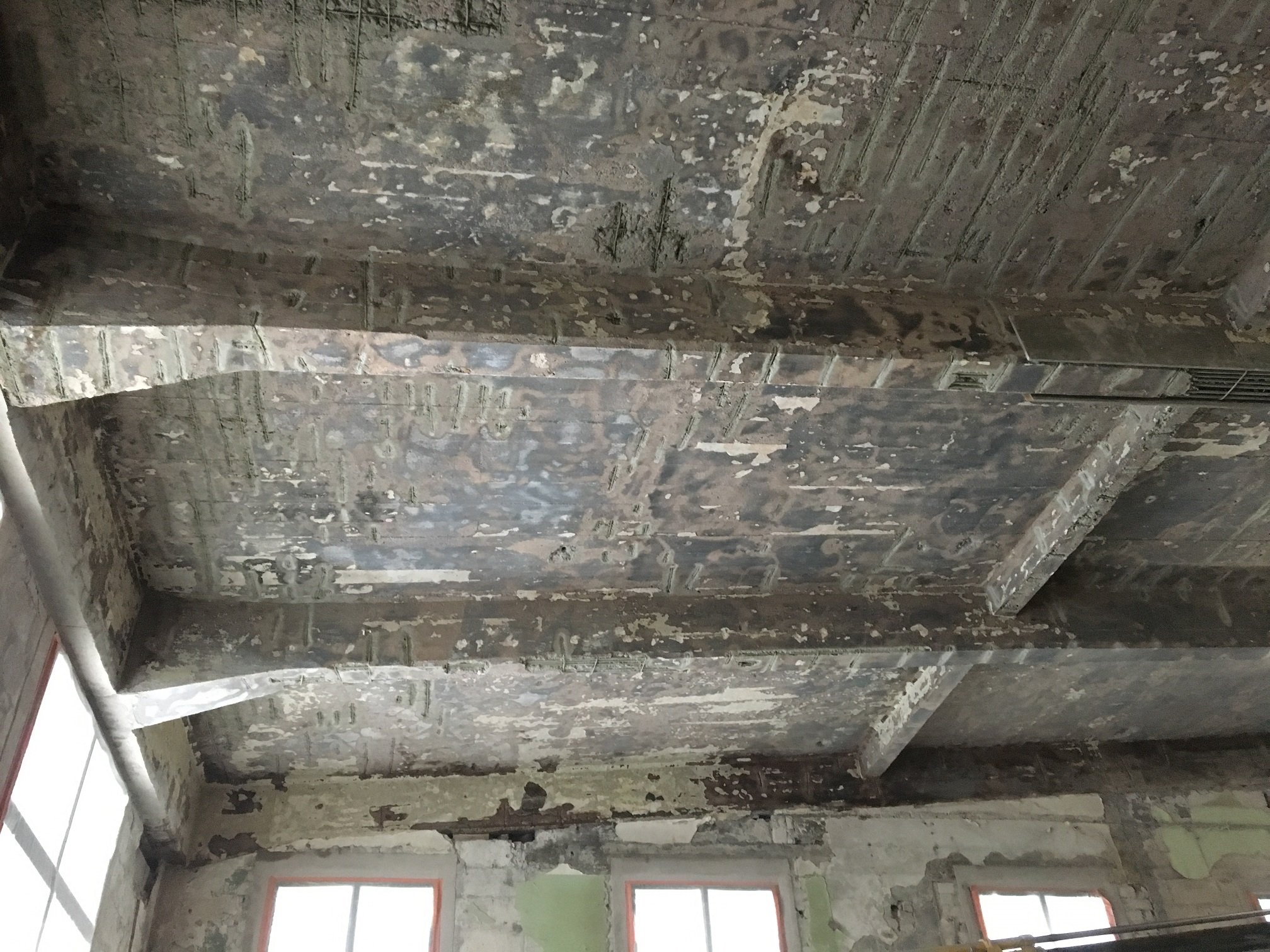 Raudbetoonkonstruktsioonide remont. Kõikide hoonesiseste kahjustunud raudbetoonkonstruktsioonide avamine, armatuuride puhastamine liivapritsiga, armatuuride asendamine, armatuuride korrosioonitõrje, betooniremondisegudega konstruktsioonide esialgse kuju taastamine.