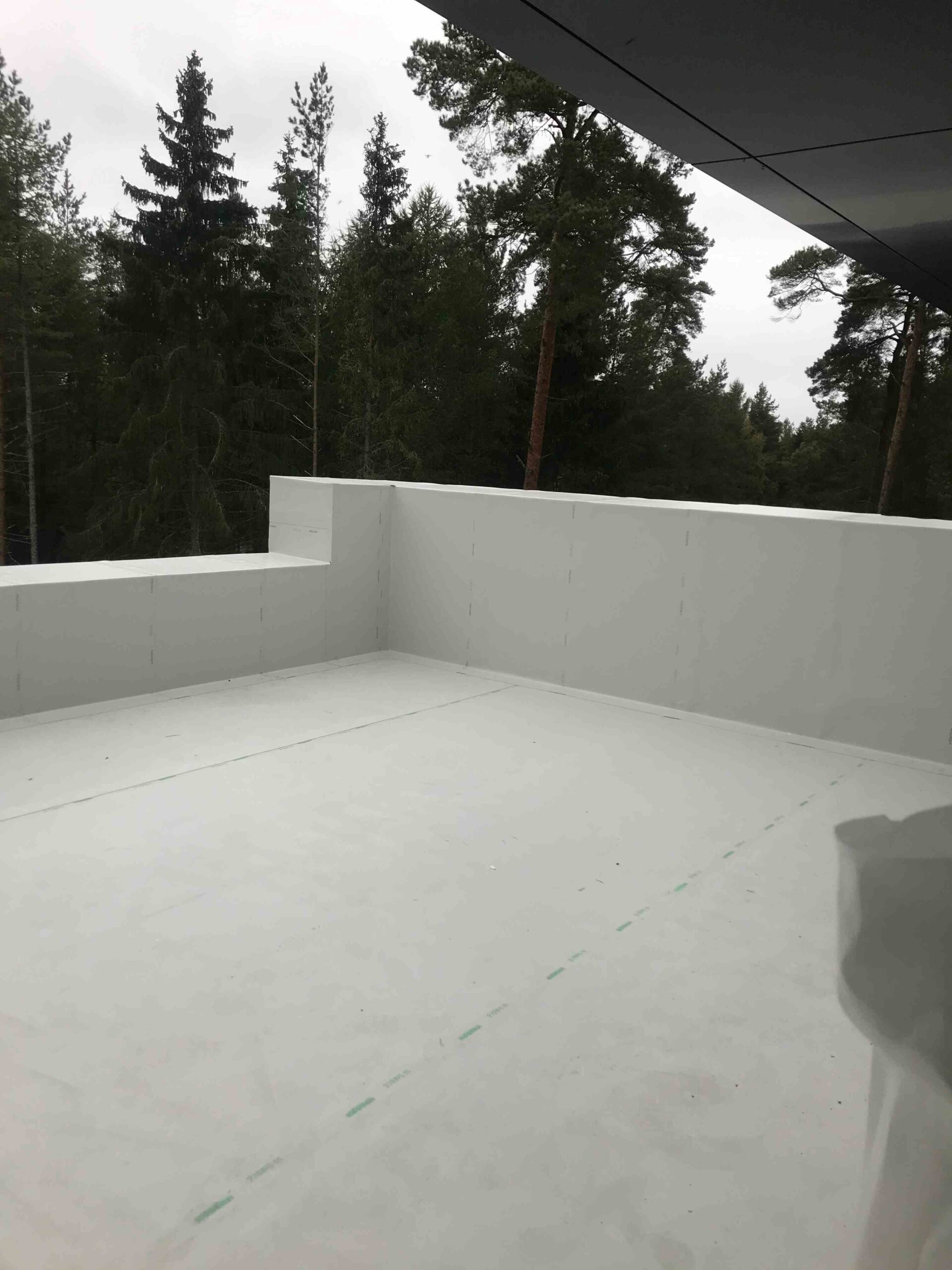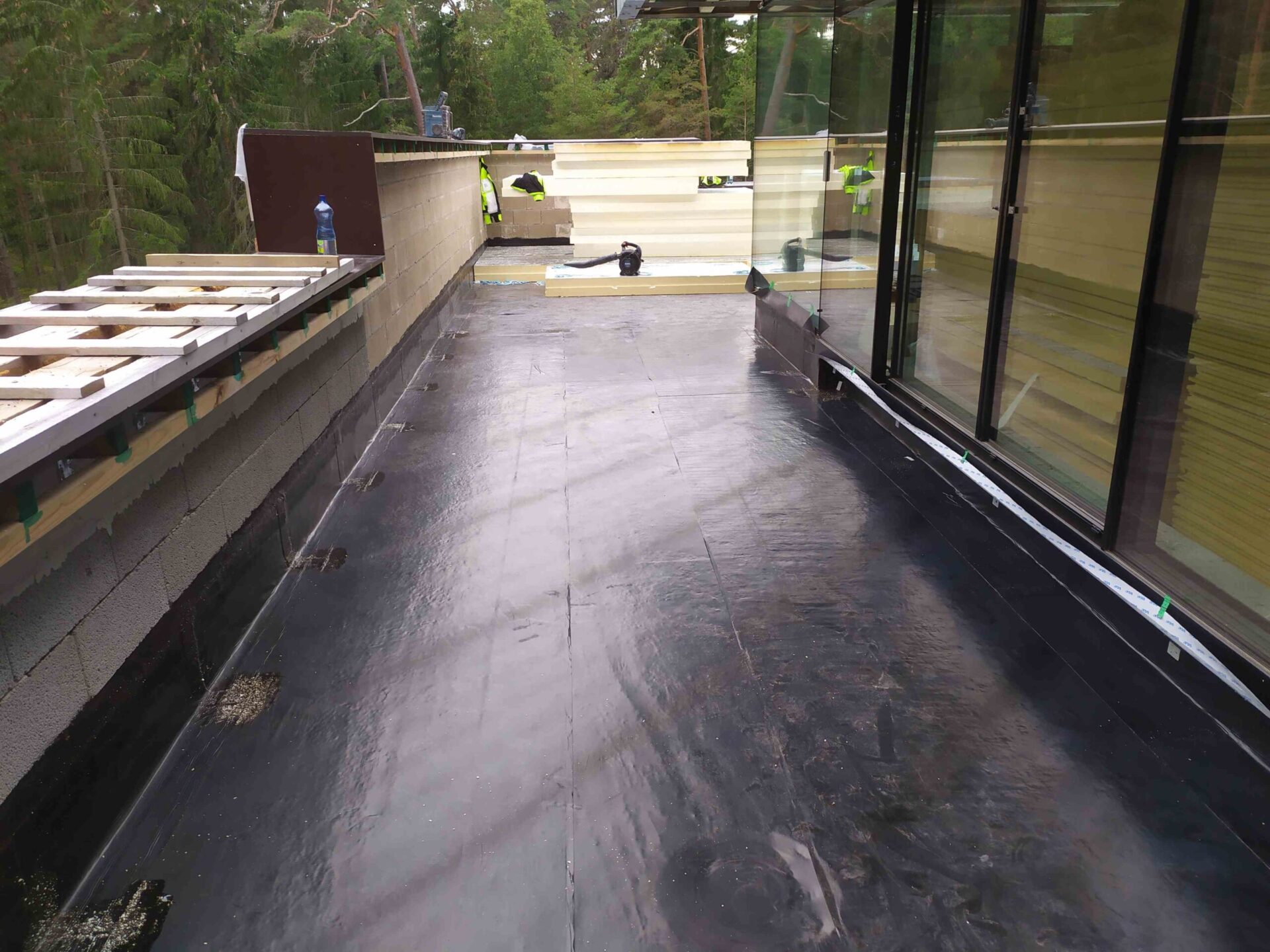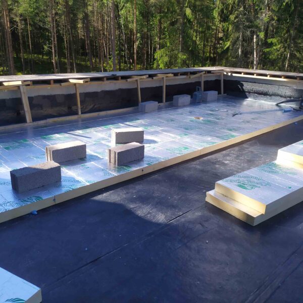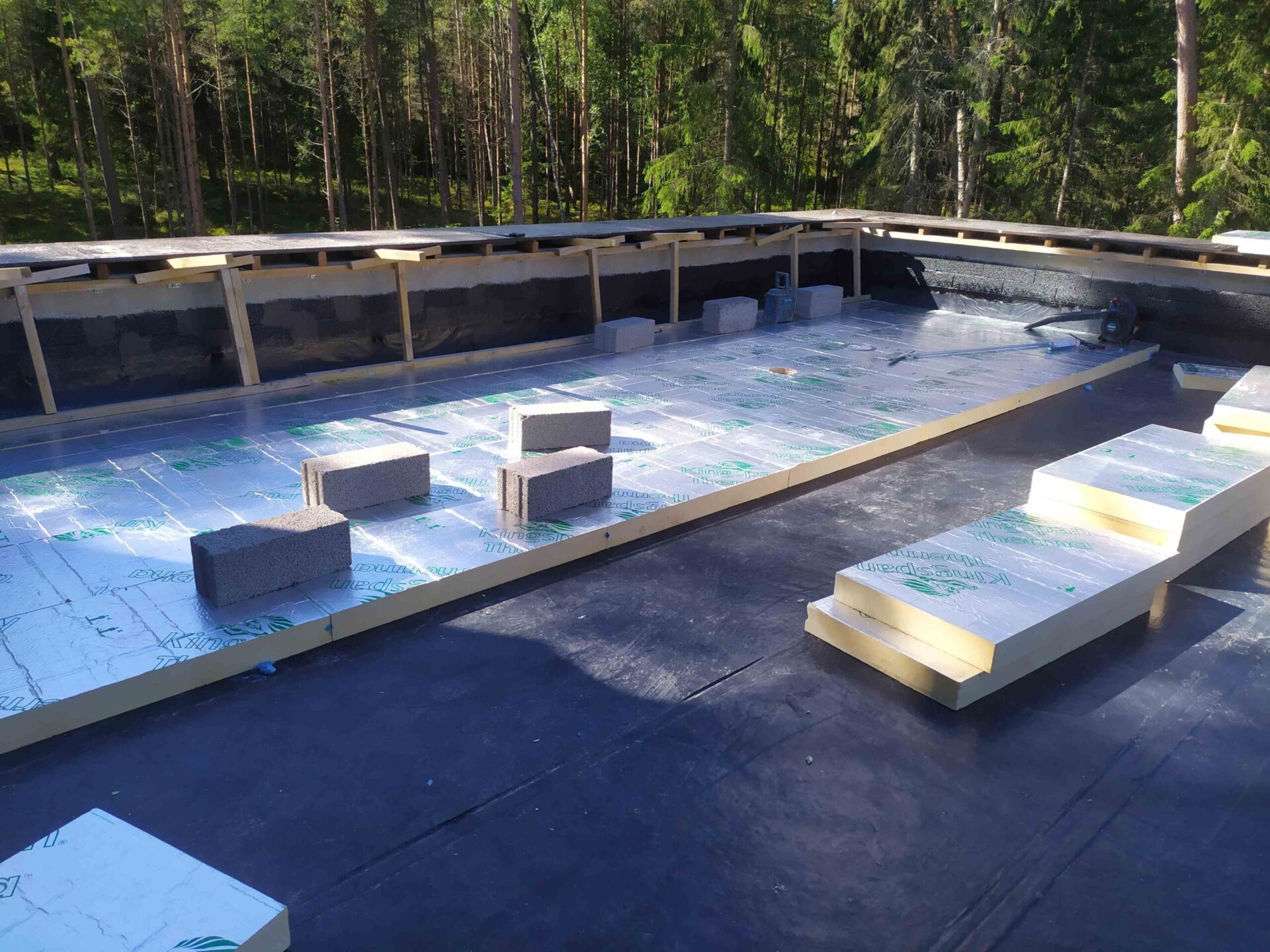 Eramu terrasside hüdroisolatsioon, soojustamine ja aurutõkke paigaldus.