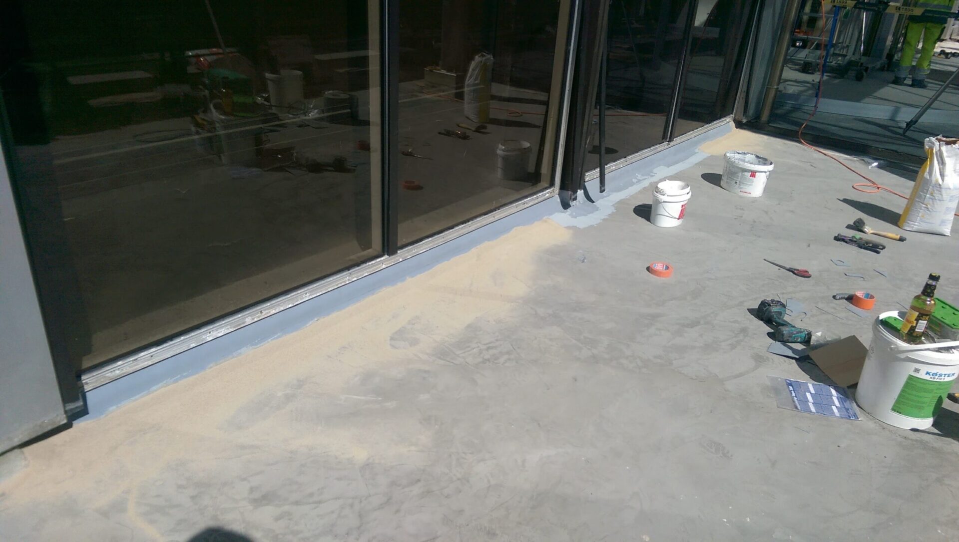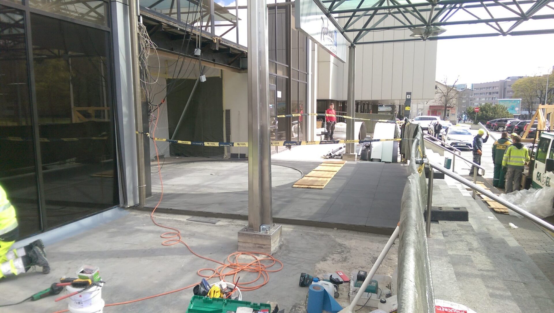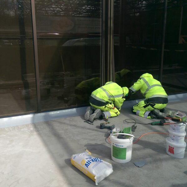 Hotell Olümpia peaukse ees oleva betoonist konstruktsiooni vuukide tihendamine deformatsioonivuugilindiga ASO-Tape, mille paigaldus teostatakse epoliimiga. Hotelli peaukse esise ala hüdroisoleerimine.